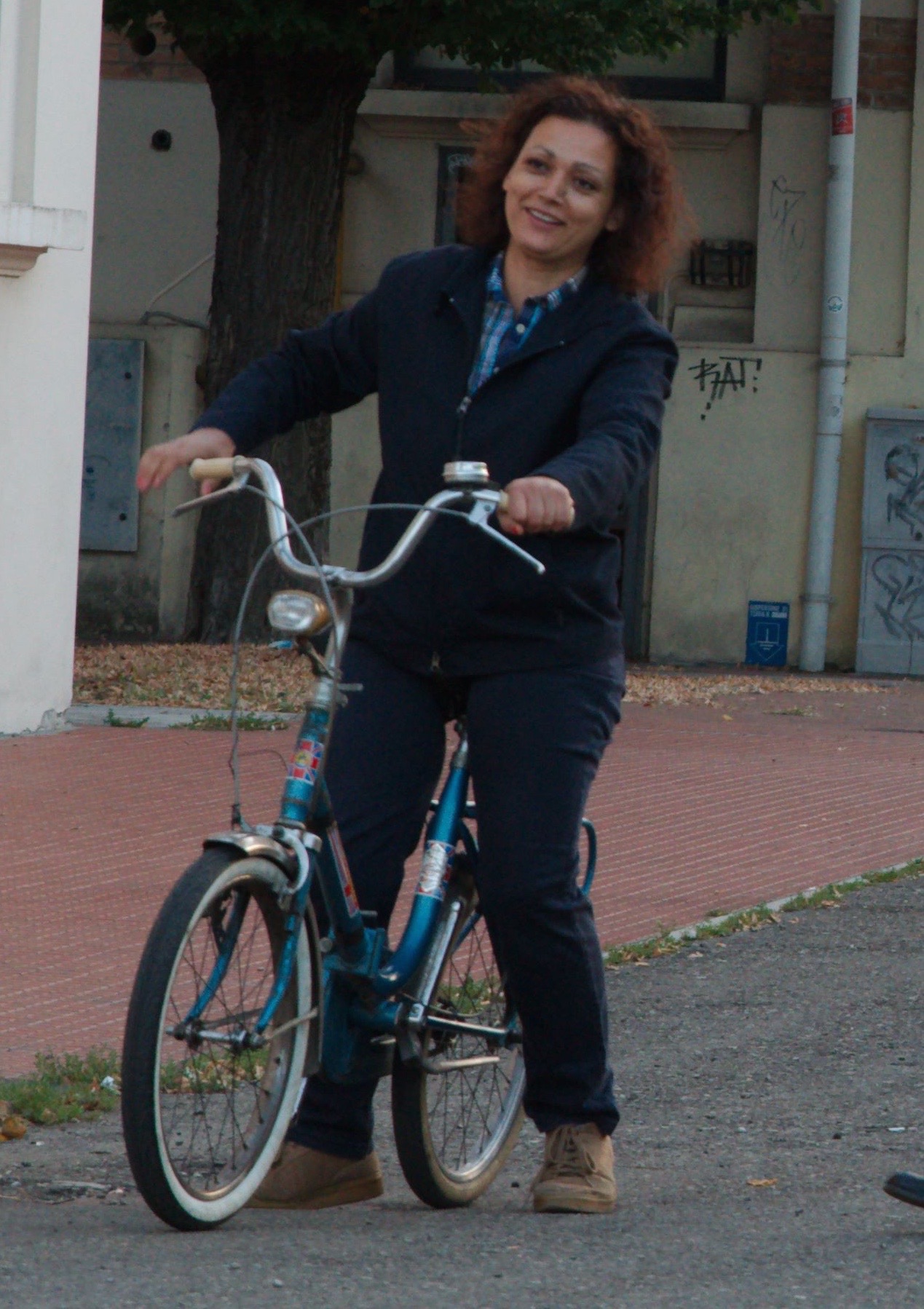 E poi, seduta al margine della strada, su un muretto che sembra messo lì apposta per lei, è seduta un’altra donna, accanto alla sua e-bike carica come per un viaggio. Ha l’aria sicura, e insieme curiosa. Dalle tasche laterali ampie e moderne sfila… un tablet. Scrive. A chi? E lei chi è? Ha un nome e un cognome, ma non è questo il momento di farli.»